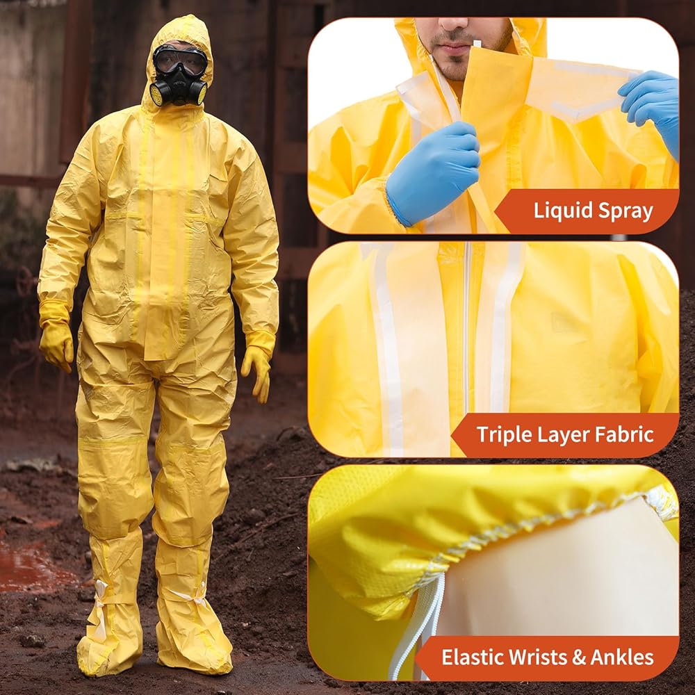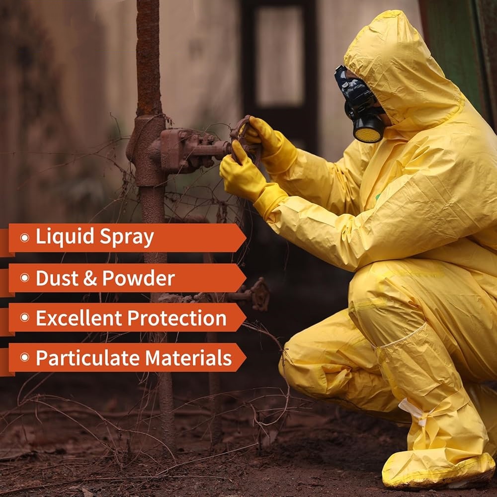 Styles: One-piece coverall with integral hood and boots, or as a separate suit with compatible gloves and boots.